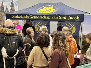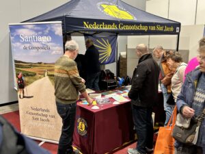 Er was een hele hoek gereserveerd voor verschillende organisaties die het pergrimeren promoten en ondersteunen. Pelgrimeren wordt steeds populairder. Uiteraard ontbrak het genootschap niet. Het kon op grote belangstelling rekenen.