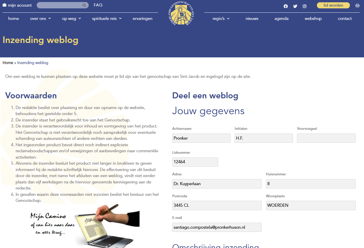 Op onze website bieden we de leden van het Nederlands Genootschap van Sint Jacob de gelegenheid hun weblog onder de aandacht van de lezers te brengen.