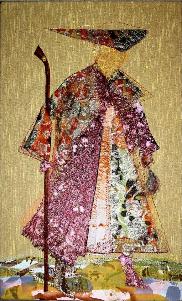 Jacobus de Meerdere is te herkennen aan een pelgrimsstaf en een pelgrimshoed.