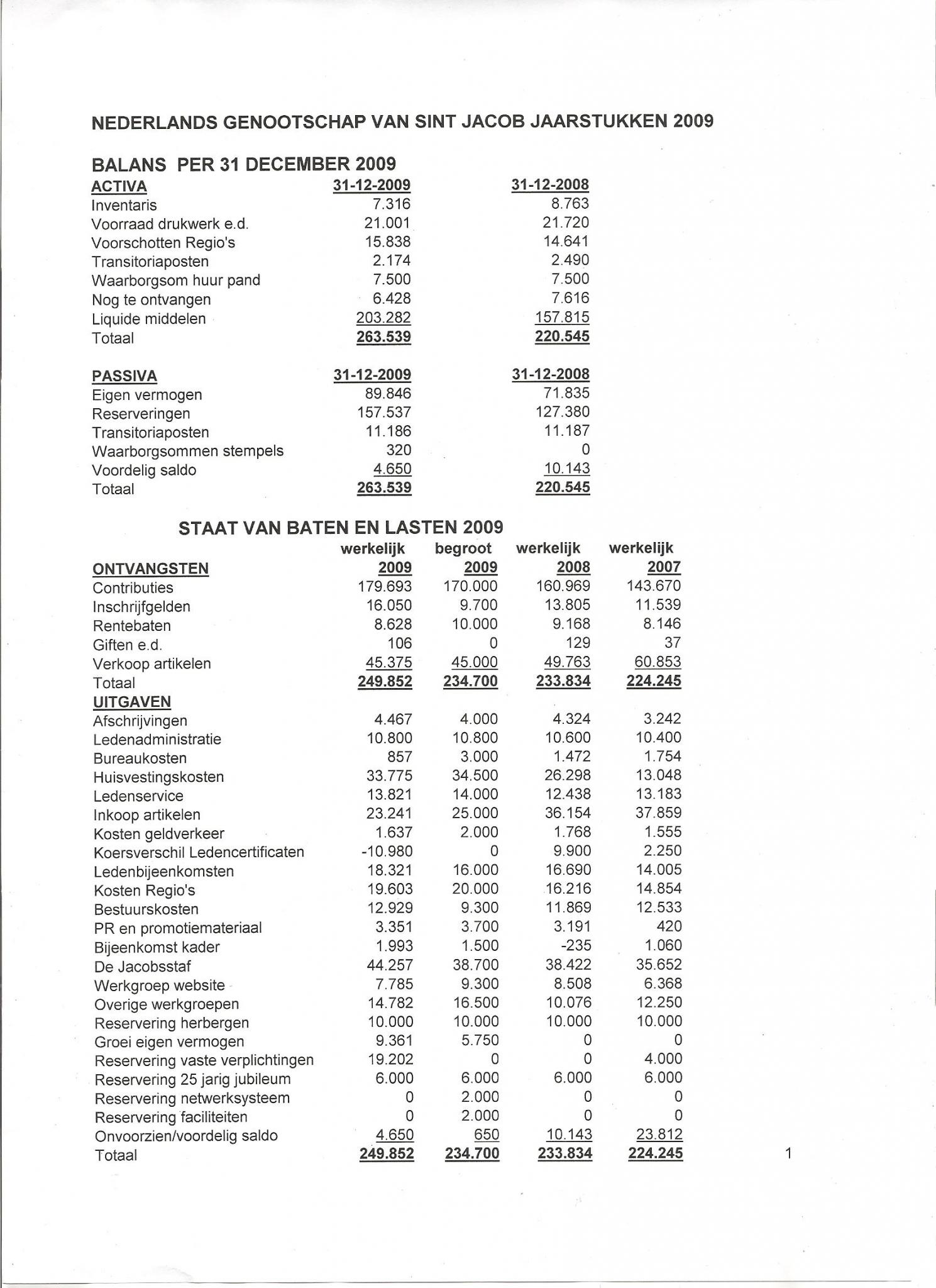 Afgetreden: in het voorjaar:Ton Aarts en Theo van Dijk en in de najaarsbijeenkomst Tijs Dorenbosch. Tijs werd opgevolgd door Joost Bol. Joost was niet aanwezig tijdens de ledenvergadering wegens zijn pelgrimage in Japan. In de Jacobsstaf 84 staan de woorden van dank aan Tijs uitgesproken door Danielle Lokin tijdens de najaarsbijeenkomst.
