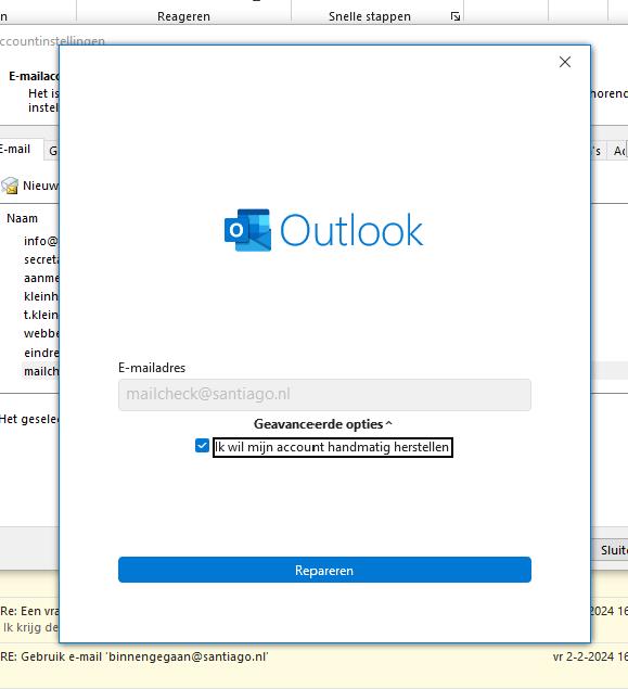 Wijzigen van het @santiago.nl emailadres in Outlook