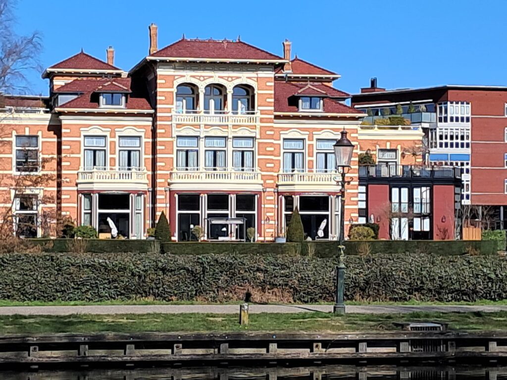 We lopen Weesp uit met zicht op de graanmolen en het prachtige huis van de familie Van Houten (van de repen).