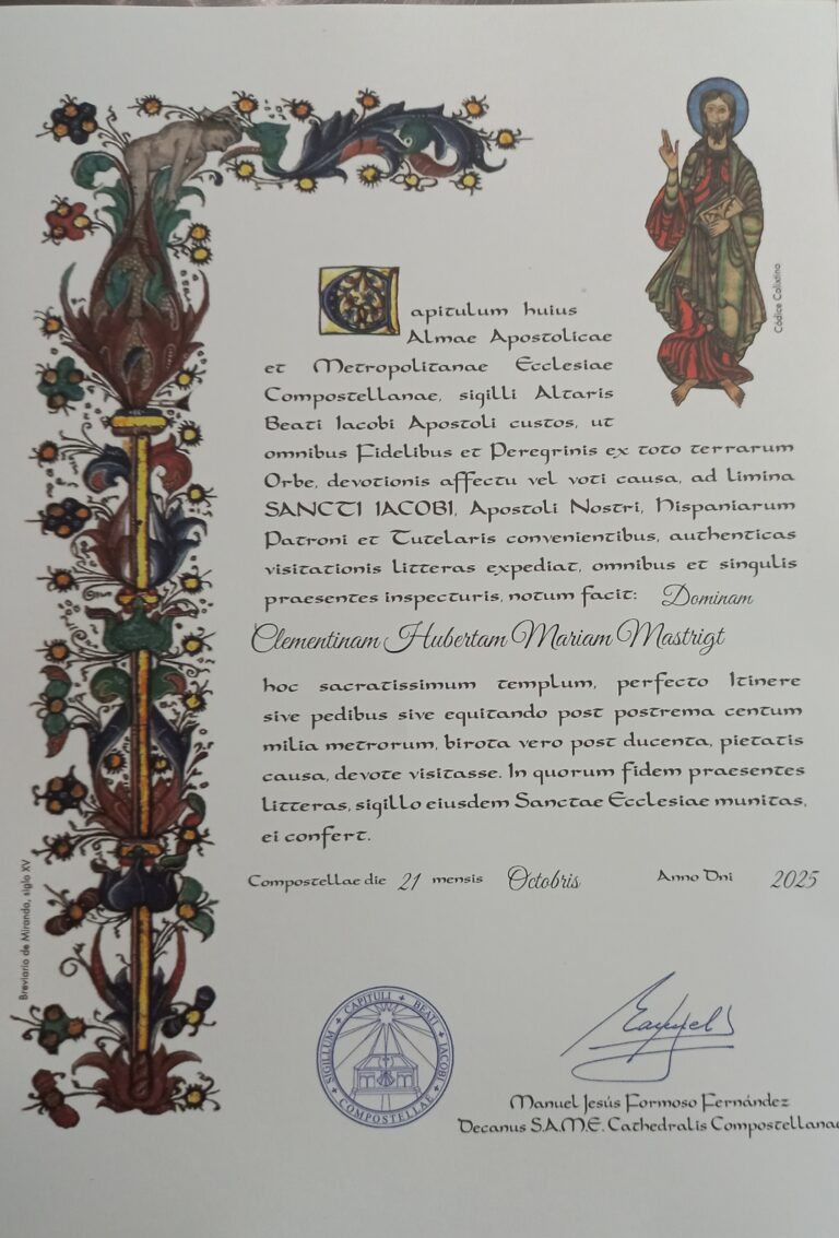 Tijdens onze Camino Portuques in oktober 2025 Na een pittige klim op de heuvels van Redondela naar Pontevedra kregen we een v d prachtigste stempels