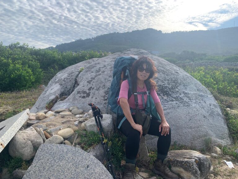 Op mijn 70e wandelde ik in oktober 2025 mijn 1e Camino. Langs de Coastal Route ter hoogte van Caminha kon ik op deze grote kei
