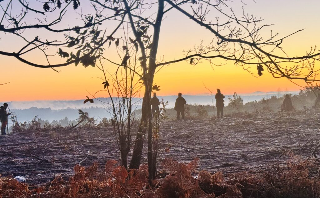“Wie niet waagt, die niet wint” op 31 december 2025. Ik had op meer licht kunnen wachten in O Pedrouzo, maar ik wilde graag de zonsopgang zien op een nabij gelegen heuvel. Door het donkere bos wandelen duurde iets langer, maar mijn wens werd vervuld.