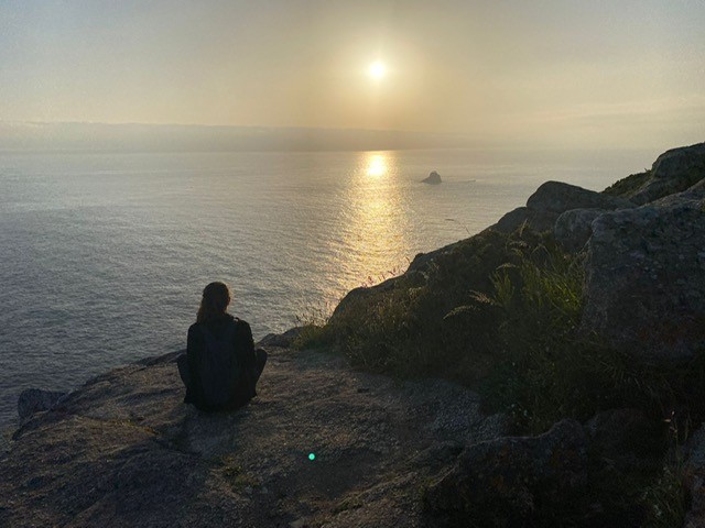 Tijdens de extra volle maan op 19 augustus heb ik deze foto genomen bij het kruis te Finisterra, na afloop van de primitivo en daarna