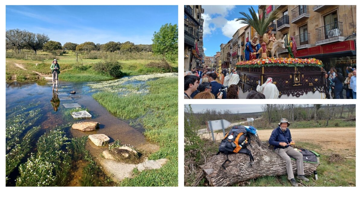 Ik heb altijd gedacht dat hoge temperaturen de grootste uitdaging zouden zijn op deze camino. De grootste uitdaging is voor ons echter het water geweest. Het aantal regendagen viel voor ons wel mee: zo’n 2 tot 3 dagen met aanhoudende regen. Maar de eerste maanden van 2025 zijn in heel Spanje uitzonderlijk nat geweest. Het gevolg daarvan was dat wij vrijwel elke dag uitgedaagd werden om meerdere keren door het water te lopen, via stapstenen beken over te steken, of gewoon maar met de schoenen nog aan door het water van beken en rivieren te lopen.